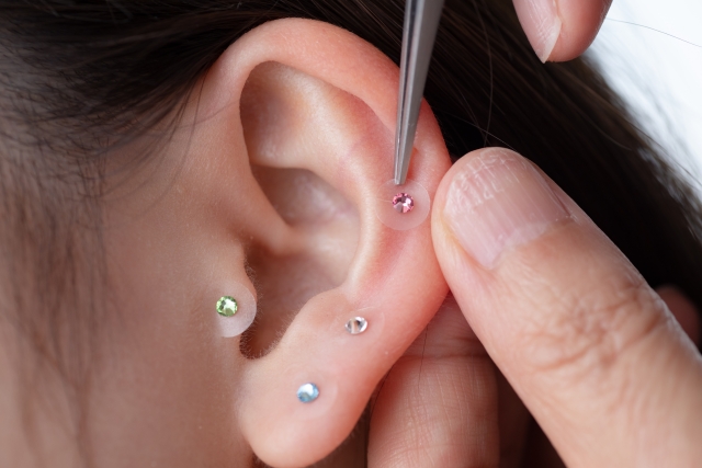耳つぼジュエリーの装着